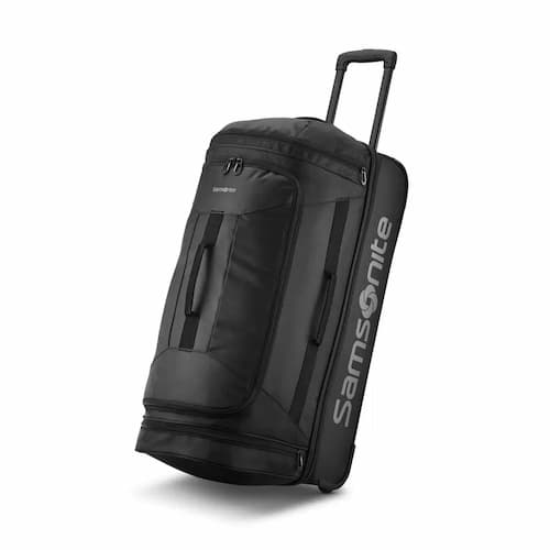 The Samsonite 32-inch Andante Wheeled Duffel is a great lightweight option that can serve as a carry-on. At 22 x 12.5 x 12 inches, it fits perfectly in the overhead bin of the plane.