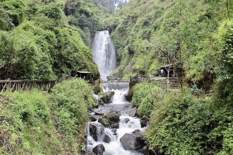 Getting to this spectacular waterfall is easy and involves a stunning hike through the Santa Rita Ecological Reserve, making it another of the most stunning waterfalls in Ecuador. You’ll start at the Caldera and wander past stunning tropical vegetation, orchids, birds, and you will even see some rainbow trout swimming in the rivers.