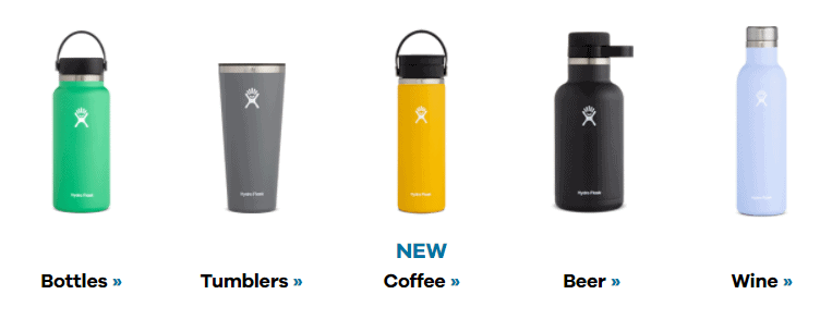 Hydro Flask is the clear winner in terms of how many different types of insulates bottles they make. Not only do they have 5+ sizes for their standard water bottles as well as standard and wide mouth options, but they also offer a wide variety of other types of insulated bottles.