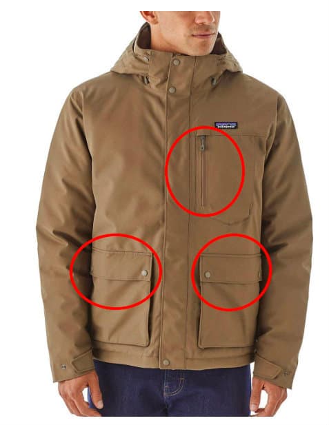 Regardless of whether you plan to wear this jacket to the office or into the mountains, you will need some pockets. And the good news is that the ones on the Patagonia Topley are just in the right places! There are overall six pockets on this jacket, and I’ll tell you about each one.