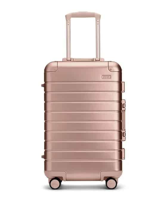 If you often travel with airlines that don’t weigh carry-ons, this is a great option. The Carry-On: Aluminum Edition is the most secure Away suitcase that is still small enough to pass as a carry-on with most airlines.