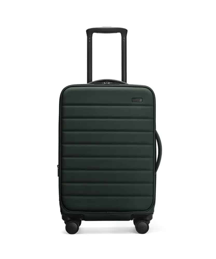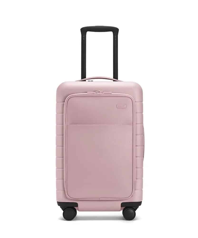 Away is a popular luggage brand known for high-quality suitcases. Their luggage is packed with useful features, it has a clean and simple design, and it’s built with the best materials.