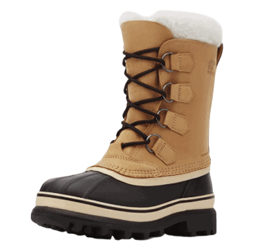 The Sorel Caribou and Carnival boots share Sorel’s classic look with the rubber lower, faux wool liner top, and four metal lace loops.