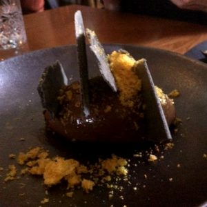 Chocolate mousse with passion fruit crumble with black sesame crackers – OMG! Check it out…